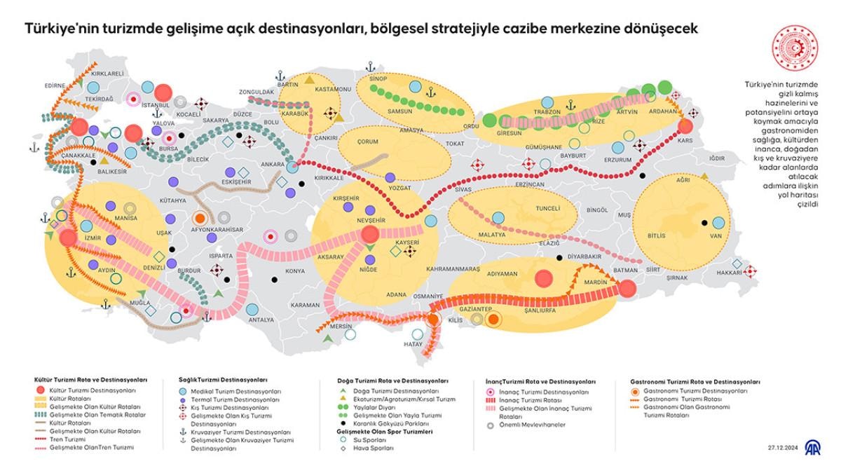 Bu kapsamda altyapı, ulaşım, tesisleşme, insan kaynakları yönetimi ve tanıtım faaliyetlerinde destinasyonlar ve rotalar baz alınacak.