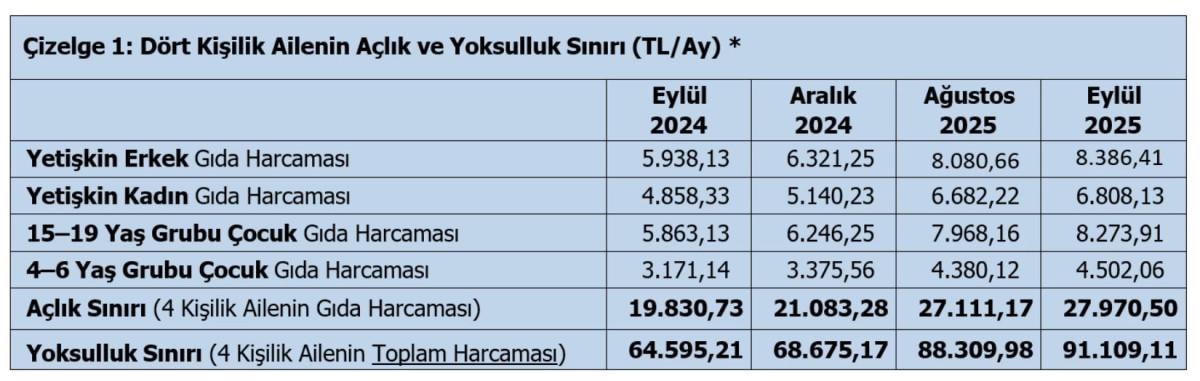 - TÜRK-İŞ, Eylül 2025 için açlık ve yoksulluk sınırını açıkladı.