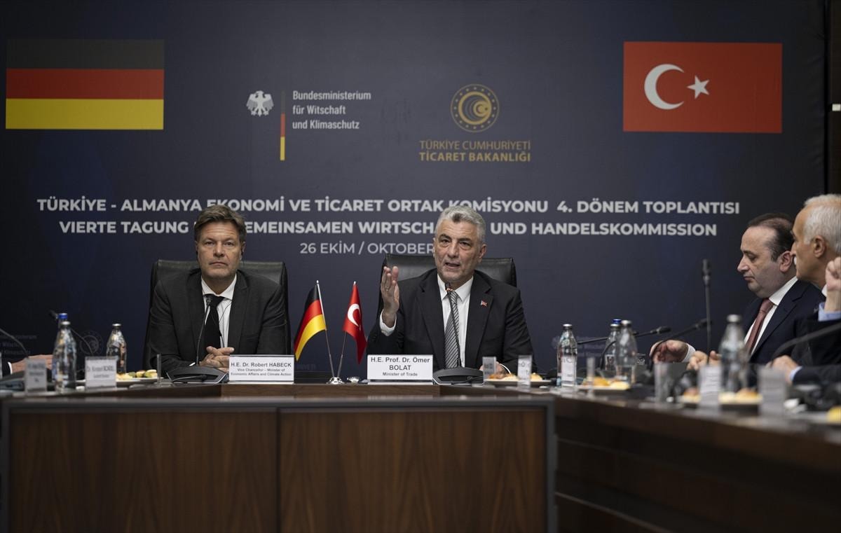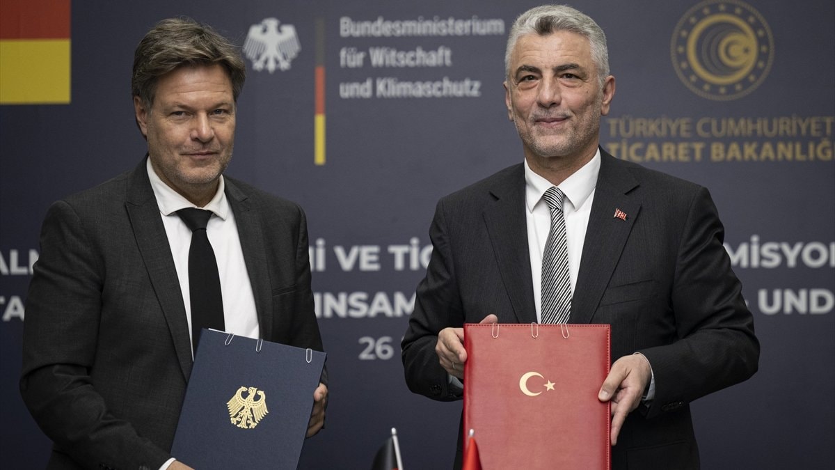 Ticaret Bakanı Ömer Bolat ile Almanya Ekonomi ve İklim Koruma Bakanı Robert Habeck, Bakanlıkta, Türkiye-Almanya Ekonomi ve Ticaret Ortak Komisyonu (ETOK/JETCO) IV. Dönem Toplantısı'na ilişkin bir protokol imzaladı.