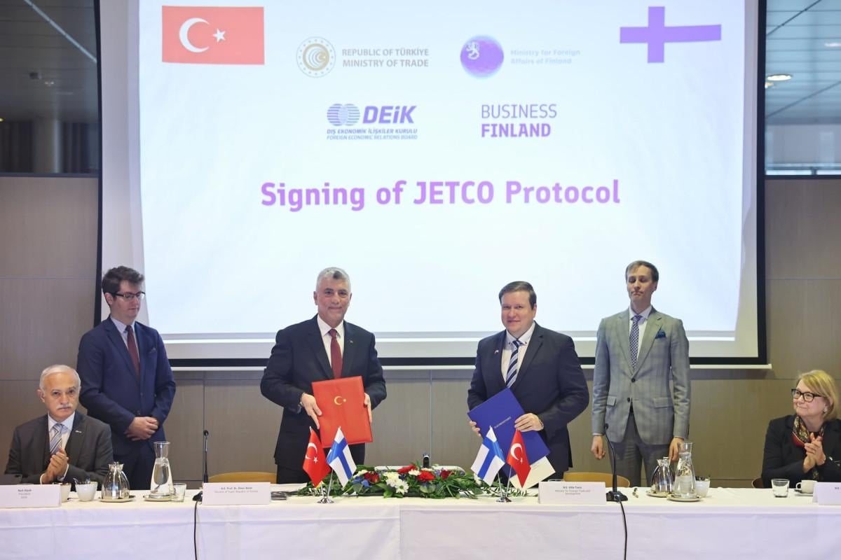 Bolat, iki ülkenin resmi ihracat kredi kuruluşları Türk Eximbank ile Finnvera arasında imzalanan Reasürans İşbirliği Anlaşması'yla ekonomik ve ticari ortaklığın bir adım öteye taşınacağını vurgulayarak, "Anlaşmayla şirketlerimiz daha fazla finansman aracından yararlanma imkanı bulacak, üçüncü ülkelerdeki potansiyel projelerimizde de daha kolay finansmana ulaşabilecekler. Türkiye olarak, Finlandiya ile iş dünyalarımız arasında iş birliğinin derinleştirilmesine ve yeni ortaklıkların kurulmasına yönelik desteğimiz tamdır. Bu kapsamda imzaladığımız JETCO Protokolü'nün ve toplantımızın ülkelerimiz için hayırlara vesile olmasını diliyorum." değerlendirmesinde bulundu.