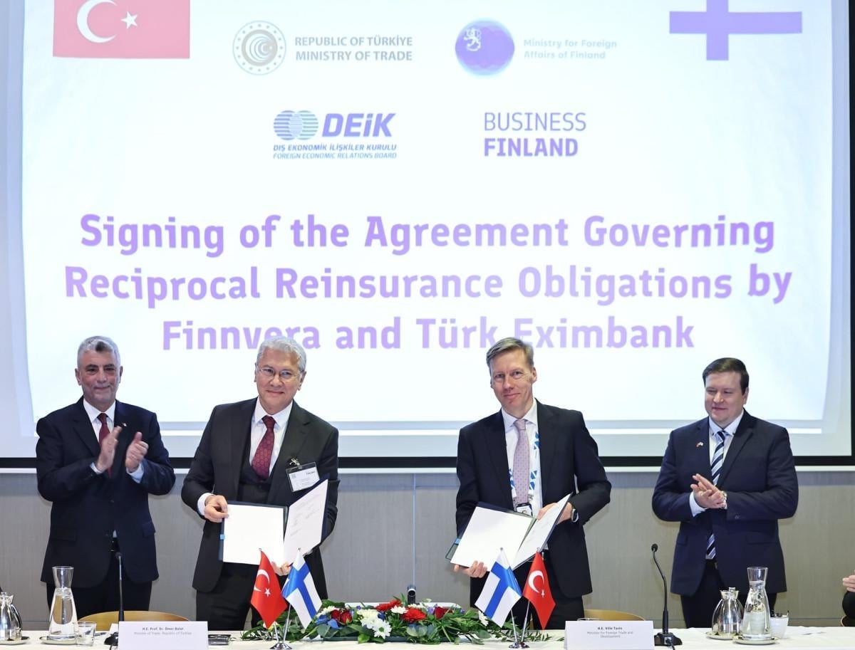Ticaret Bakanı Ömer Bolat, Türkiye ile Finlandiya arasında imzalanan Reasürans İşbirliği Anlaşması'yla şirketlerin daha fazla finansman aracından yararlanma imkanı bulacaklarını bildirdi.