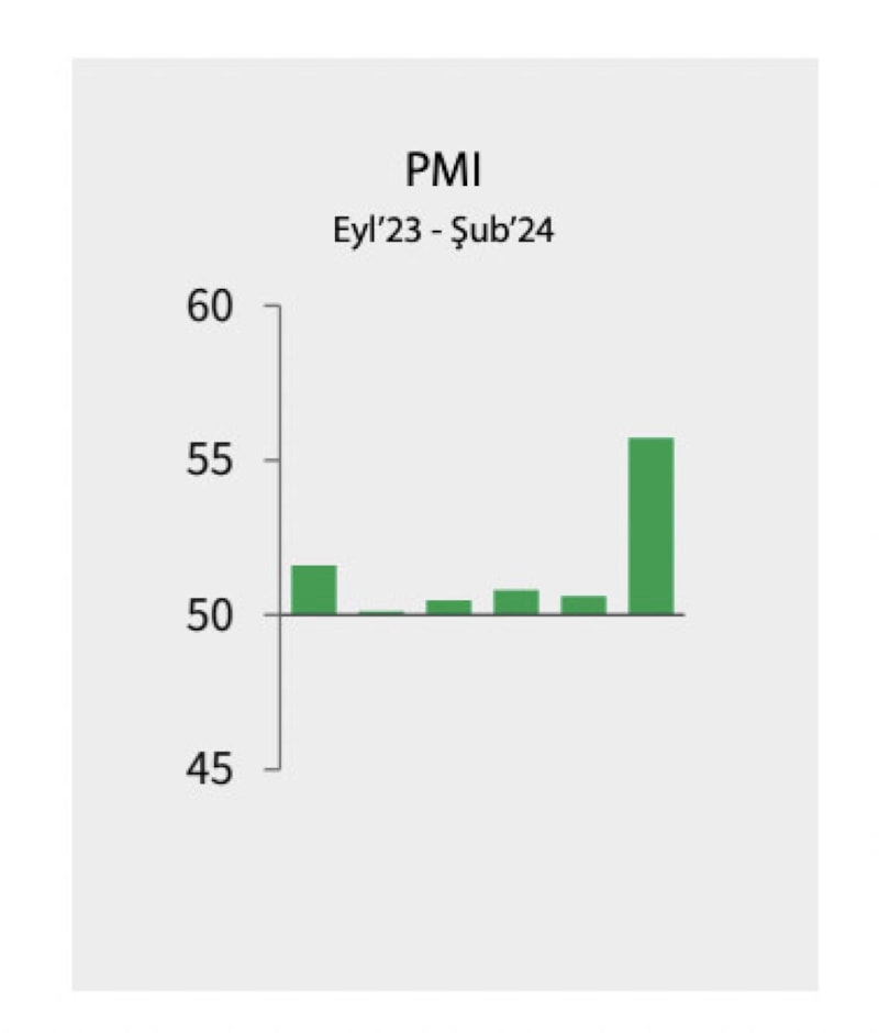 Eşik değer olan 50,0’nin üzerinde ölçülen tüm rakamların sektörde iyileşmeye işaret ettiği anket sonuçlarına göre, ocak ayında 49,2 olarak gerçekleşen manşet PMI, şubatta 50,2’ye yükselerek yeniden 50,0 eşik değerinin üzerine çıktı.