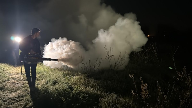 DÜZCE'DE ÇİFTÇİ ZİRAİ DONA KARŞI SİSLEME YÖNTEMİNİ KULLANIYOR