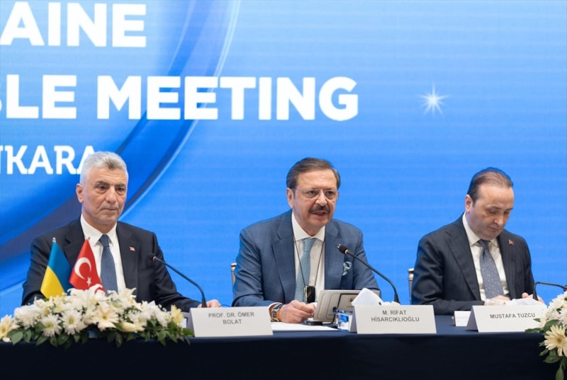 Türkiye-Ukrayna Yuvarlak Masa Toplantısı; Ticaret Bakanı Ömer Bolat, Ukrayna Başbakan Yardımcısı ve Ekonomi Bakanı Yulia Sviridenko, Ukrayna Tarım Politikaları ve Gıda Bakanı Vitaliy Koval ile Türkiye Odalar ve Borsalar Birliği (TOBB) Başkanı Rifat Hisarcıklıoğlu'nun katılımıyla TOBB'da gerçekleşti.