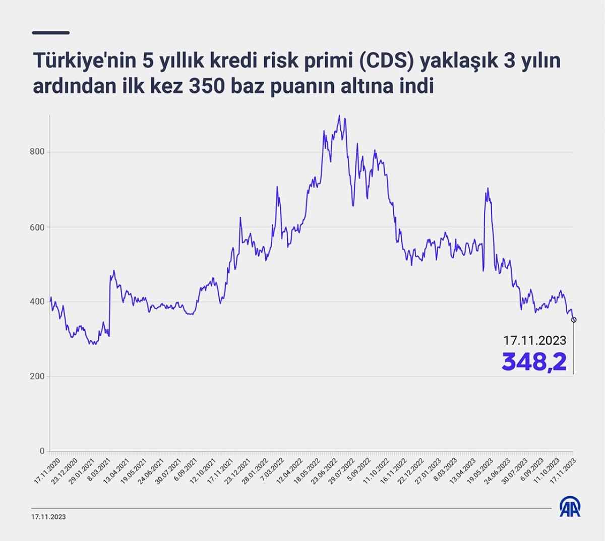 Türkiye'nin 5 yıllık kredi risk primi (CDS) 348,2 ve 6 aylık CDS'si ise 44,07 puana geriledi.