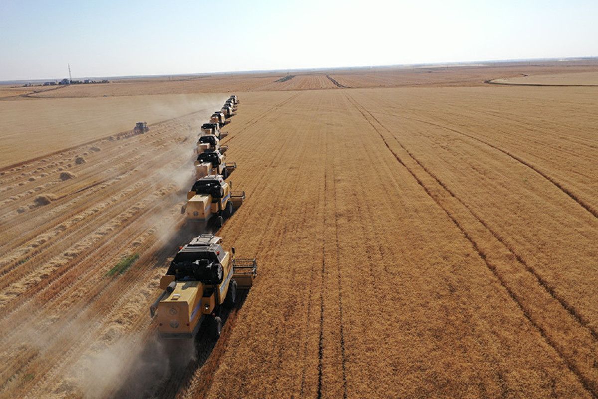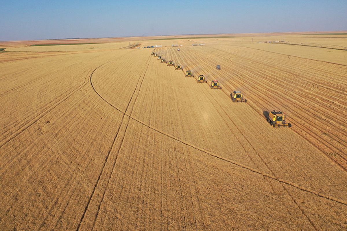"Hububat deposu" olarak bilinen dev işletmede mayıs ayı sonunda başlayan buğday hasadı; 184 biçerdöver, 128 kamyon ve 1.200 işçinin katkısıyla sürüyor.