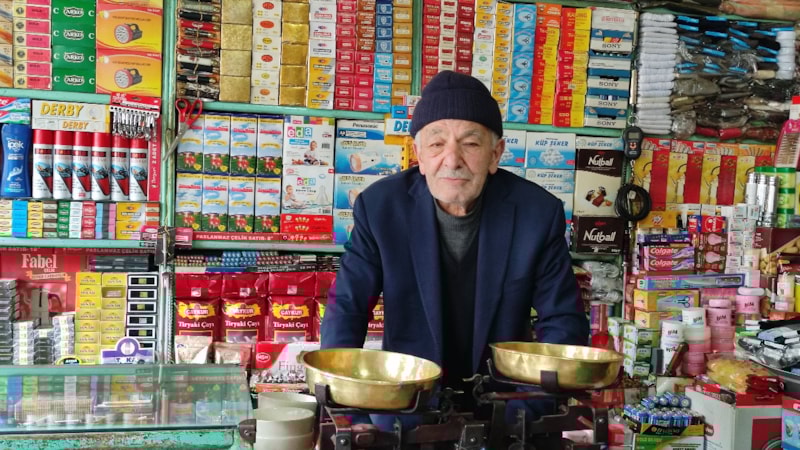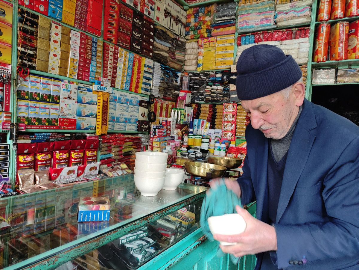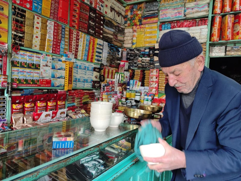 Temizliği ile ünlü 74 yaşındaki Cengiz Çelik, 56 yıldır Ardahan merkezde bakkallık yapıyor.