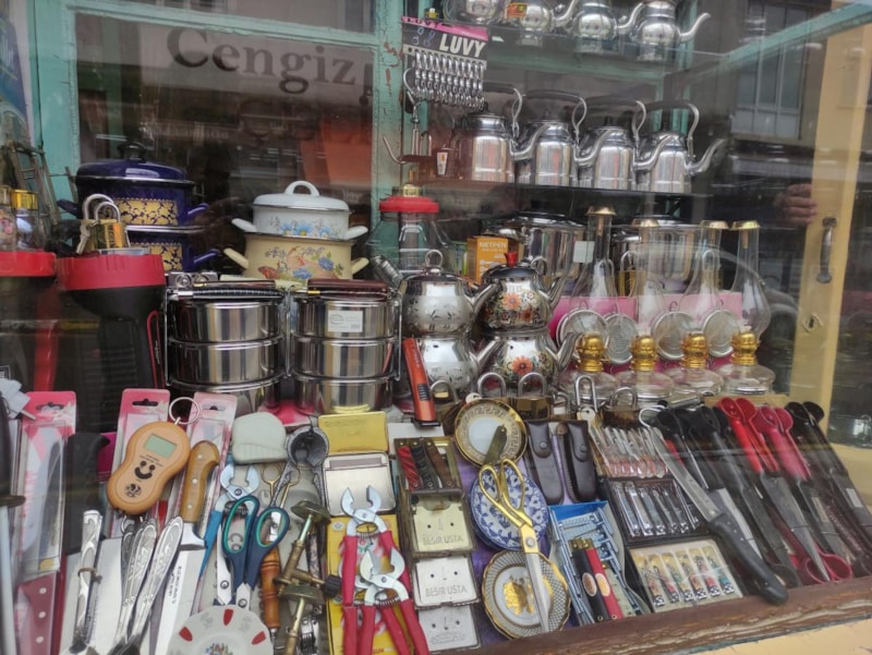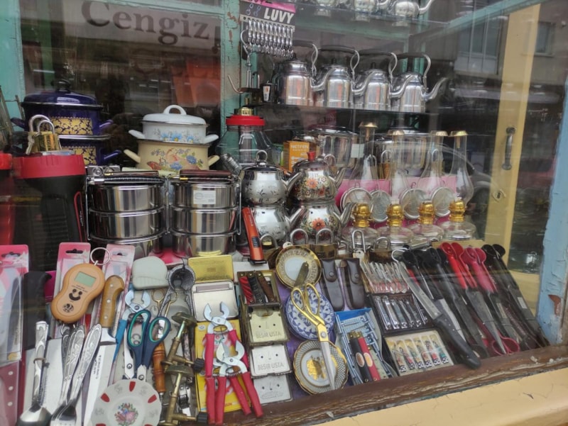 Ama içlerinden birisi var ki; ilerlemiş yaşına rağmen her gün ürünleri diziyor, düzenliyor ve temizliyor.
