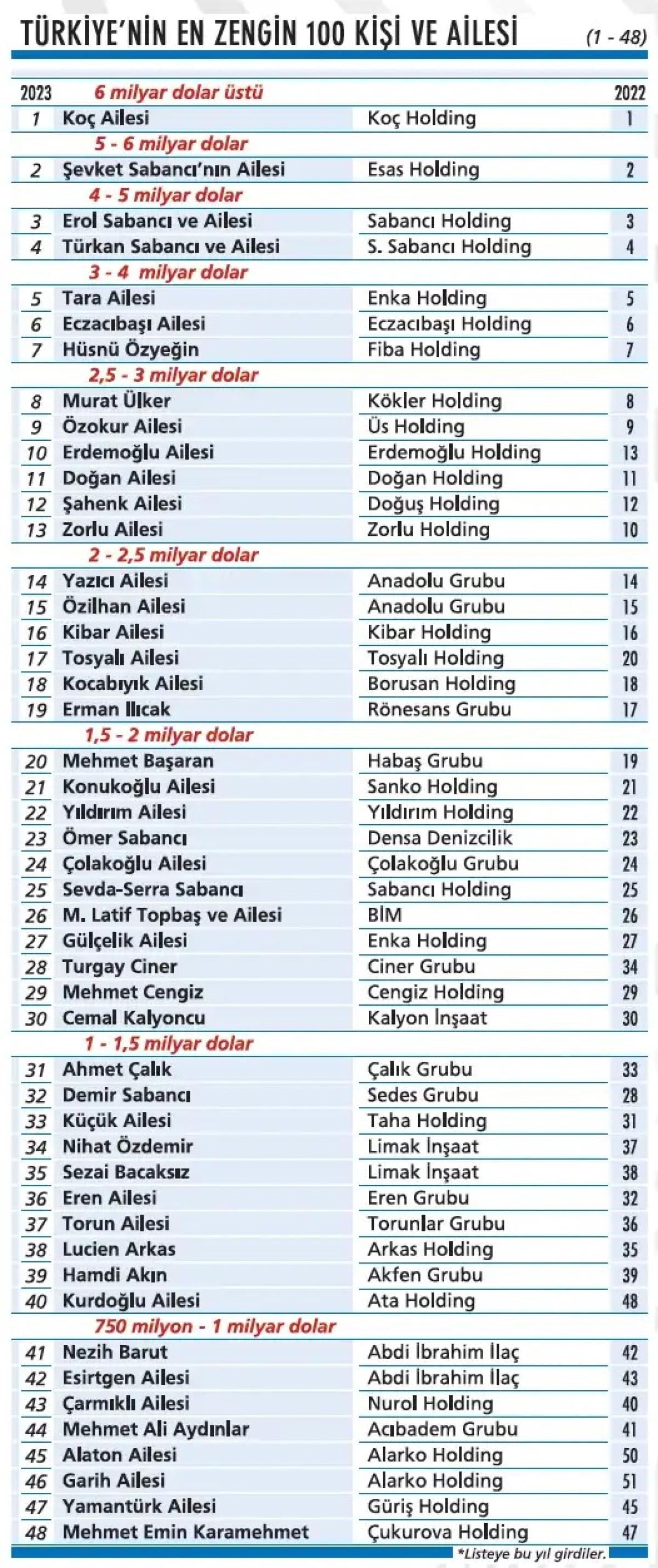Türkiye'nin en zengin aileleri listesi açıklandı.