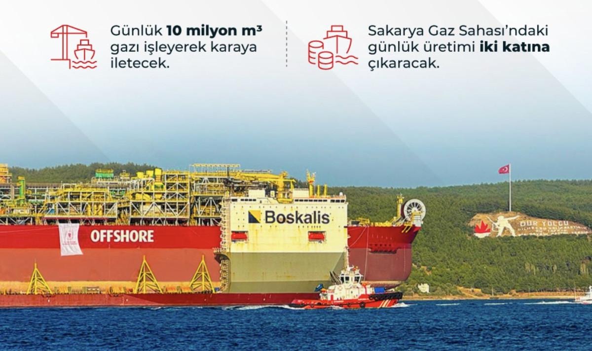 Paylaşımda, günlük 10 milyon metreküp gazı işleyerek karaya iletecek platformun, Sakarya Gaz Sahası'ndaki günlük üretimi iki katına çıkaracağı aktarıldı.