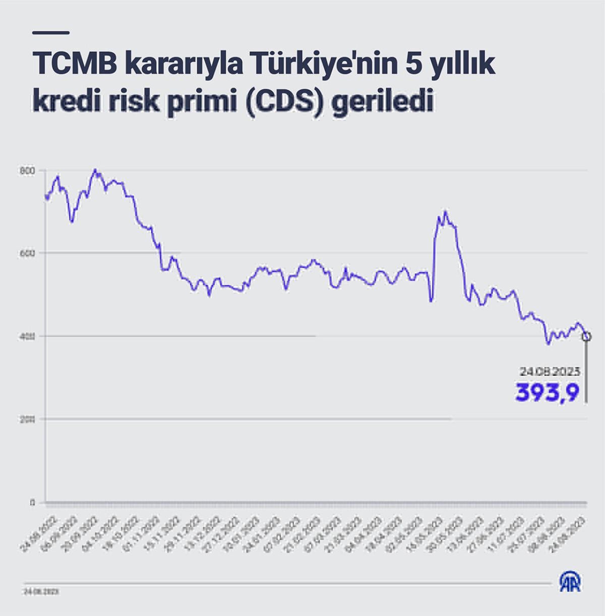 Türkiye'nin risk primi faiz kararı sonrası ilk refleks olarak 400 puanın altına inerek Türkiye'nin CDS'si 394,6 baz puan oldu.