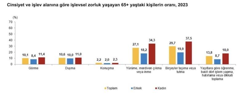 -Görmede çok zorlanan ya da hiç göremeyen 65+ yaştaki kişilerin oranı yüzde 10,1 oldu.