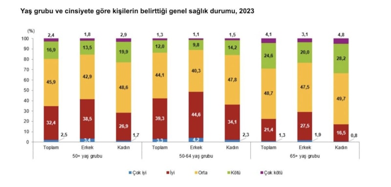 -Genel sağlık durumunu iyi ya da çok iyi olarak belirten 65+ yaştaki kişilerin oranı yüzde 22,7 oldu.