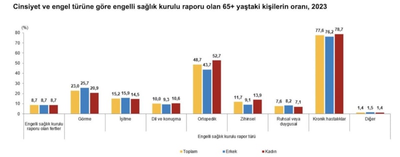 -Engelli sağlık kurulu raporu olan 65+ yaştaki kişilerin oranı yüzde 8,7 oldu.
