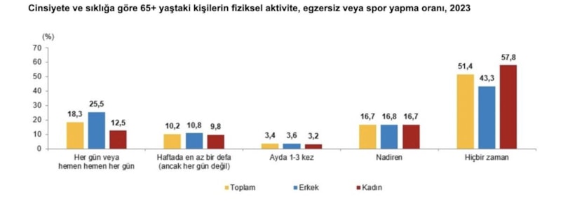 -Düzenli olarak fiziksel aktivite, egzersiz veya spor yapan 65+ yaştaki kişilerin oranı yüzde 18,3 oldu.