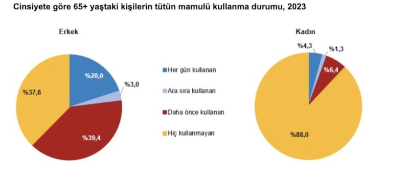 -Her gün tütün mamulü kullanan 65+ yaştaki kişilerin oranı yüzde 11,3 oldu.