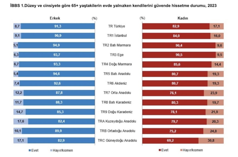 -Evde yalnızken kendini güvende hisseden 65+ yaştaki kişilerin oranı yüzde 86,6 oldu.