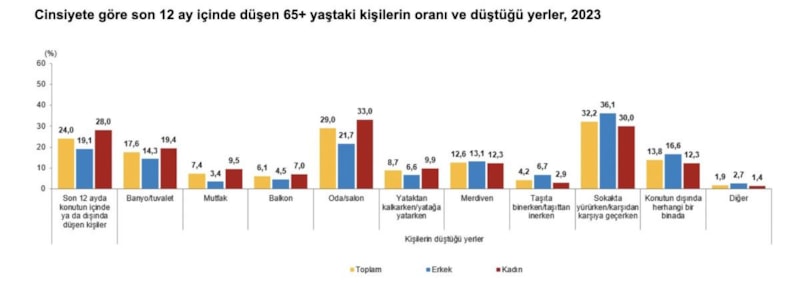 -Son 12 ay içinde konutun içinde ya da dışında düşen 65+ yaştaki kişilerin oranı yüzde 24,0 oldu.