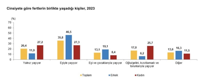 -Yalnız yaşayan 65+ yaştaki kişilerin oranı yüzde 20,4 oldu.