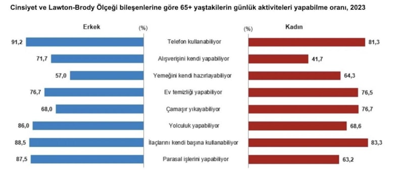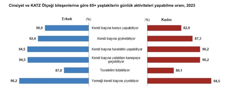 -Kendi başına banyo yapabilen 65+ yaştaki kişilerin oranı yüzde 86,5 oldu.