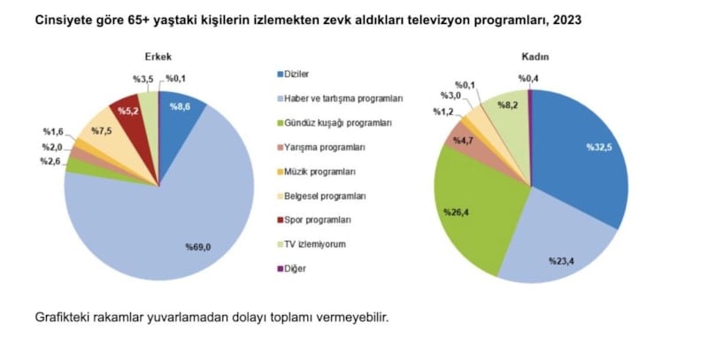 -Erkekler en fazla haber ve tartışma programlarını izlerken kadınlar en fazla TV dizilerini izledi.
