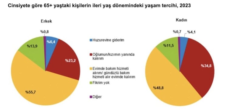 -Kişilerin yüzde 54,6'sı ileri yaş döneminde evde bakım/gündüzlü bakım hizmeti alacağını belirtti.