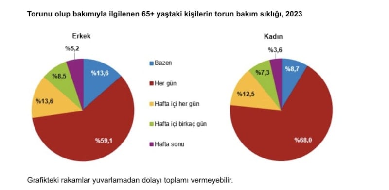 -Torunu olup bakımıyla ilgilenen 65+ yaştaki kişilerin oranı yüzde 9,7 oldu.