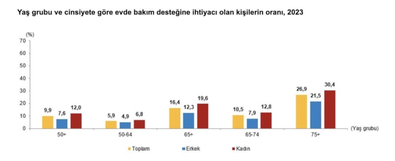 -Evde bakım desteğine ihtiyacı olan 65+ yaştaki kişilerin oranı yüzde 16,4 oldu.