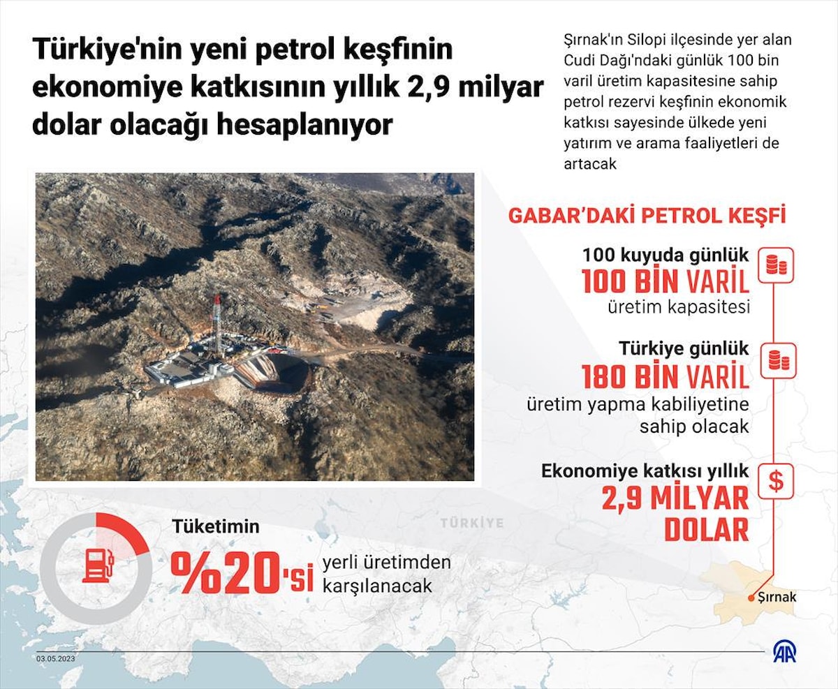 Cumhurbaşkanı Erdoğan, geçen yıl aralıkta Gabar Dağı'nda 150 milyon varillik net petrol rezervine sahip saha keşfedildiğini açıklamış ve sahadaki rezerv değerinin yaklaşık 12 milyar dolar olduğunu belirtmişti. Söz konusu keşifle birlikte Türkiye'nin üretilebilir petrol rezerv miktarı 450 milyon varilden 600 milyon varile çıktı.