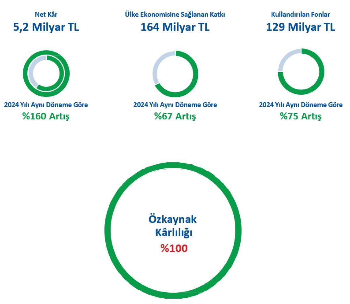 Net kârını %160 artırarak 5,2 Milyar TL seviyesine taşıyan Emlak Katılım, aktif büyüklüğünü 246 Milyar TL’ye ulaştırırken; toplanan fonlarını 175 Milyar TL’ye yükseltti. Aynı dönemde kullandırılan fon büyümesi %75 düzeyinde gerçekleşirken, %1,05 seviyesindeki takibe dönüşüm oranı ve %22,76’lık sermaye yeterliliği oranı ile sektördeki sağlam duruşunu pekiştirdi.