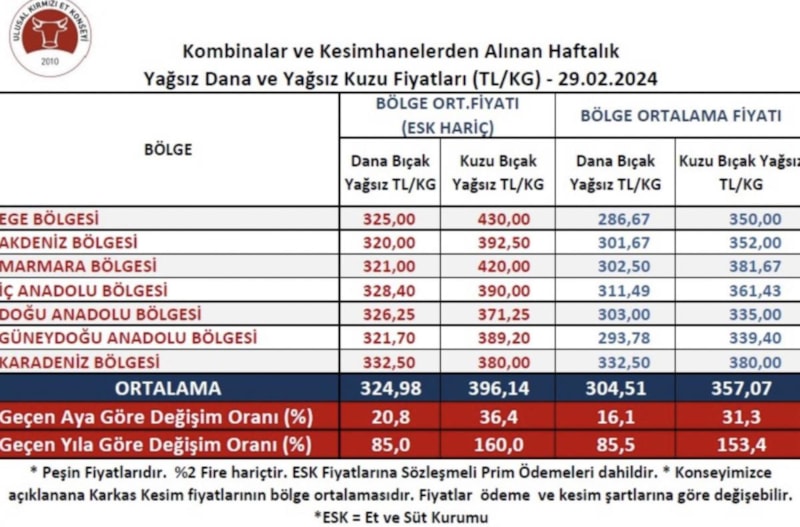 Belli başlı illerdeki büyük işletmeler kırmızı et fiyatını tırmandırıyorlar. Bu işin öncülüğünü yapan 3-5 firma var. Bu firmalar, fiyatı yüksek göstererek insanları beklentiye sokuyor. Bu, gerçek üreticinin zararına yapılan bir olay. Bu insanlar hayvan ithalatında ciddi paralar kazandı. Devlet bunun önüne geçmeye başladığı anda bütün dengeler bozuldu. Bu yüzden bir sürü yol deniyorlar. Şu an suni bir piyasa var ve kırmızı et fiyatlarında bir artış beklenmiyor. Artışın aksine Ramazan ayının ortalarında kırmızı et fiyatlarının düşüşe geçmesini bekliyoruz. Fiyatlar bu şekilde sürdürülebilir değil.