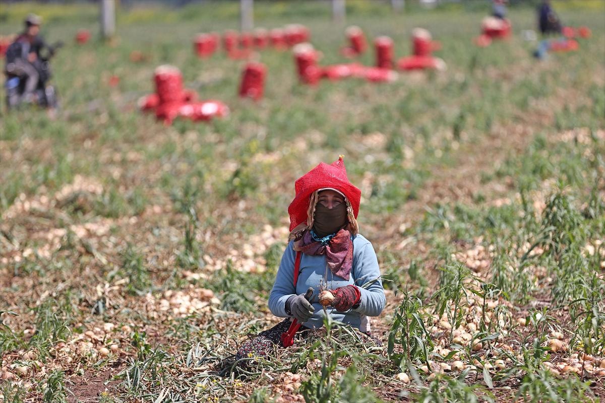 Fiyatları düşürecek olan ve bir hafta önce başlayan turfanda soğan hasadı Adana ve Hatay'da devam ediyor.