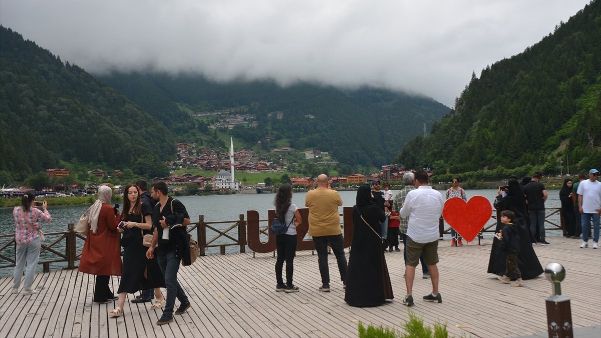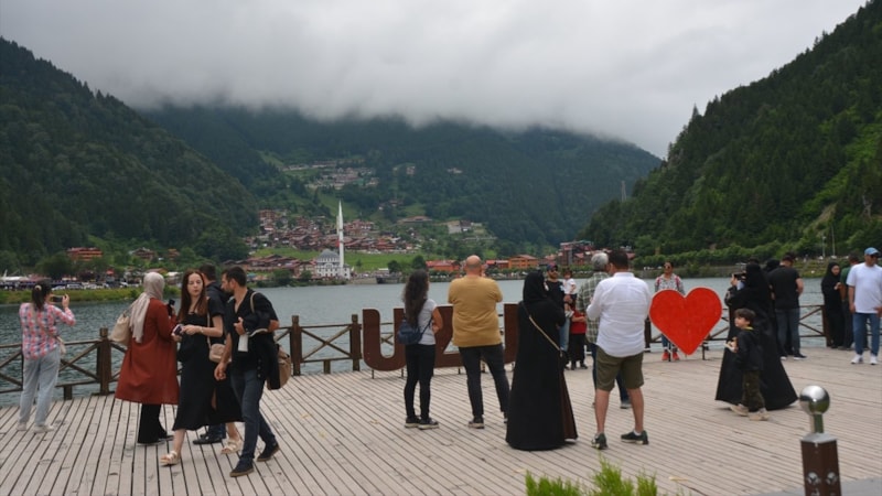 Trabzon'un Çaykara ilçesindeki Uzungöl, bayram tatili döneminde misafirlerini ağırladı.