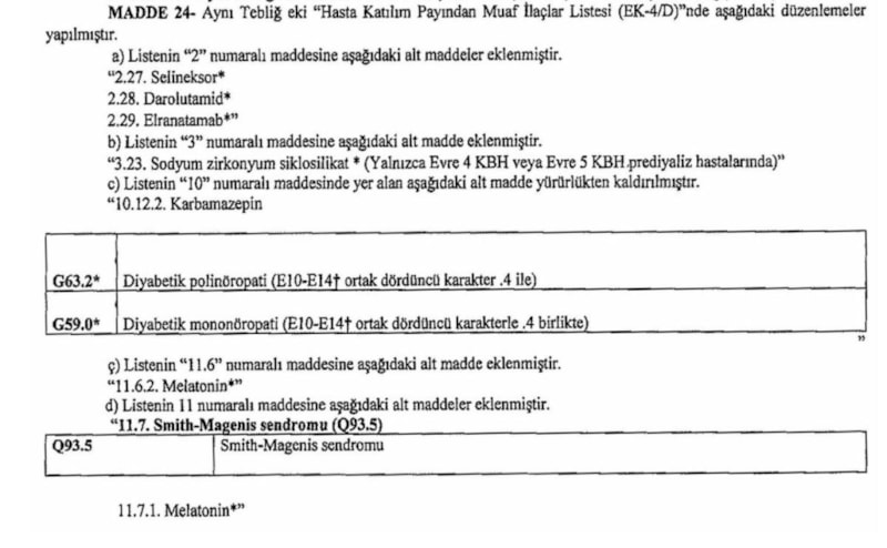 "Aile hekimliği uzmanları ve iç hastalıkları uzmanları daha fazla ilaca rapor düzenleyebilecek. Kardiyolojik, dermatolojik ve göz hastalıkları ile diyabet, hipertansiyon, major depresyon ve daha birçok hastalığın tedavisinde kullanılan ilaçlar ve çölyak tedavisinde kullanılan ürünlere erişim kolaylaştırıldı.Tüm vatandaşlarımıza sağlıklı bir ömür dilerim."