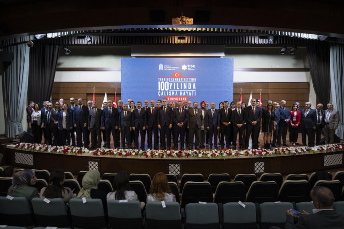 Çalışma ve Sosyal Güvenlik Bakanı Vedat Işıkhan, Ankara Yıldırım Beyazıt Üniversitesi (AYBÜ) ile Türkiye İşveren Sendikaları Konfederasyonu (TİSK) iş birliğinde düzenlenen "Türkiye Cumhuriyeti'nin 100. Yılında Çalışma Hayatı Sempozyumu"na katıldı.