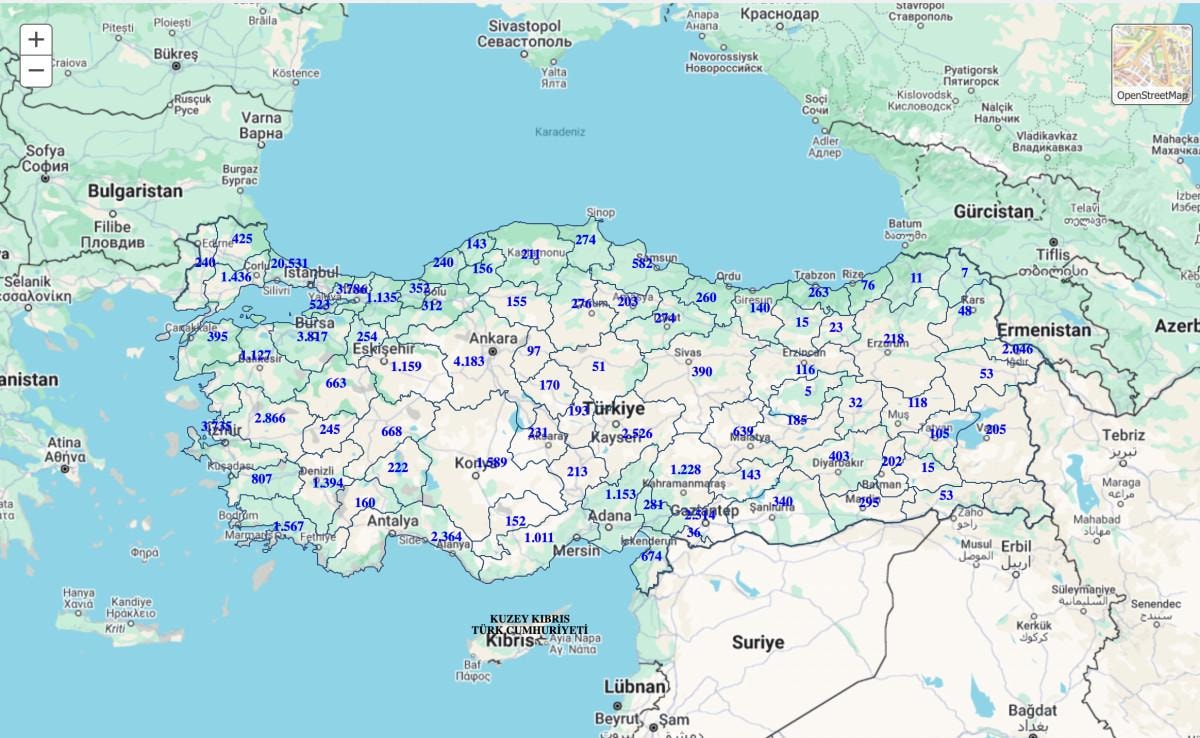 Türkiye genelinde 76 bin 656 anlık açık iş ilanını yer alırken; harita incelendiğinde en fazla arayışının 20 bin 531 iş ile İstanbul'un Avrupa Yakası'nda olduğu görülüyor.