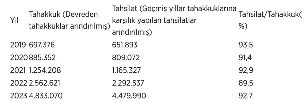 Kümülatif açıklanan verilerin gerçek tahsilat performansını göstermemesi nedeniyle cari yıl tahsilat performansının ölçülmeye başlanıldığının aktarıldığı açıklamada, şu değerlendirmede bulunuldu: