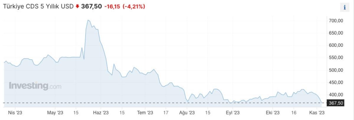 Mayıs ayında 700 baz puan seviyesinde olan Türkiye'nin CDS'i, 3 Kasım Cuma günü 365 baz puan civarına inerek son 2 yılın en düşük seviyesini gördü.