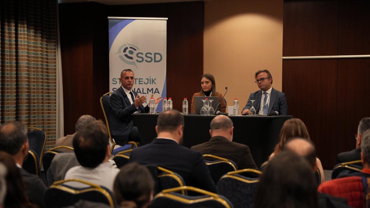 Sempozyumda; ASELSAN Merkezi Satınalma Direktörü Fevziye Yılmaz, savunma sanayiinde tedarik yönetimindeki kritik süreçleri, yapay zeka destekli senaryoları, tedarikçi seçimlerini ve sivil endüstri firmalarının savunma sanayiine entegrasyonunu ele aldı.