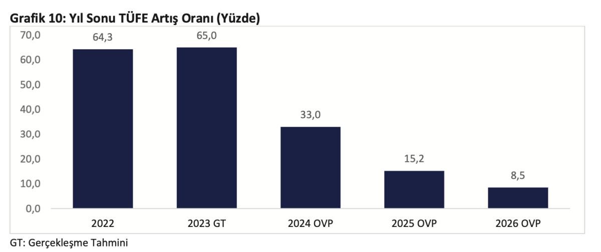 Orta Vadeli Program'da (OVP) 2024 için enflasyon tahmini yüzde 33, 2025 için yüzde 15,2; 2026 içinse yüzde 8,5 oldu.