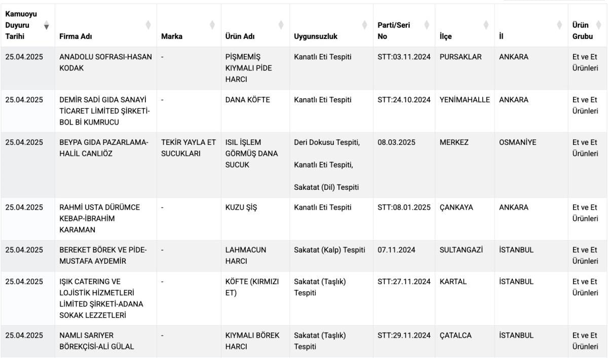 Tarım ve Orman Bakanlığı, sağlığı tehlikeye düşüren gıdalar listesini güncelledi.