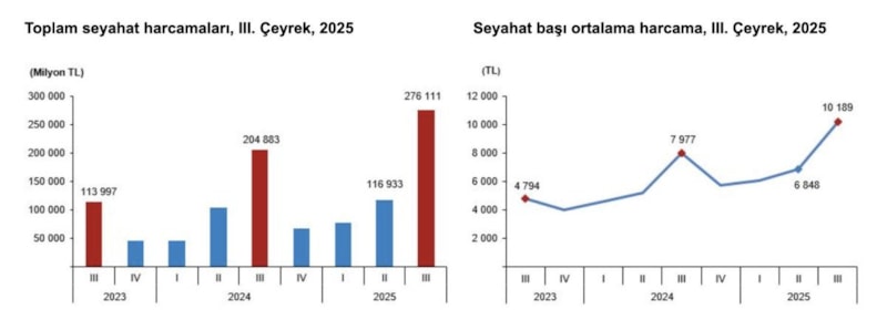 Yerli turistler 2024'ün tamamında 419,3 milyar liralık seyahat harcaması yapmıştı. Böylece geçen yılın 9 ayındaki harcamalar 2024'ün tamamını geçti.
