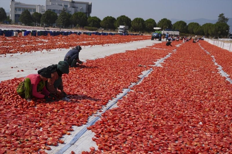 Ege'nin verimli ovalarında yetişen ve güneşte kurutulan domatesler, işlemlerin ardından başta ABD ve Avrupa ülkeleri başta olmak üzere çeşitli ülkelere ihraç ediliyor.