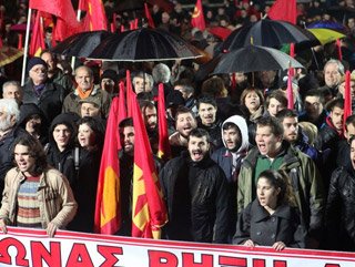 KKE Genel Sekreteri Dimitris Kuçumbas, gösteride yaptığı açıklamada, "Sözde memorandum karşıtı hükümet Troyka ile yeni anlaşma yaparak memorandum politikalarını devam ettiriyor" dedi.