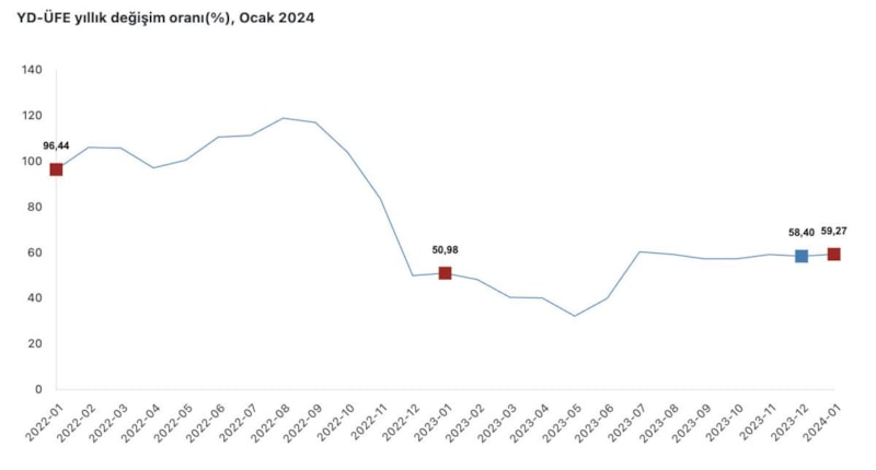 YD-ÜFE imalat ürünlerinde yıllık yüzde 59,24 arttı