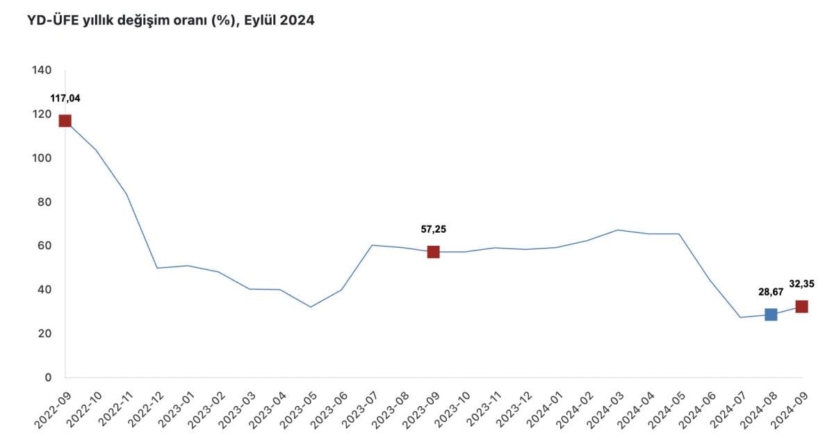 YD-ÜFE İMALAT ÜRÜNLERİNDE YILLIK YÜZDE 32,27 ARTTI