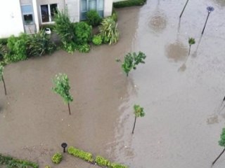 LÜKS SİTE İNSAN BOYUNA ULAŞAN SEL SULARININ İÇİNDE KALDI