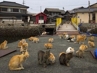 Japonya'nın güneyinde bulunan Aoşima adasında bulunan Ehime köyünde balıkçılıkla geçinen köylüler, kedileri beslemek için büyük efor harcıyor. Kediler de terk edilmiş bina ve alanlarda yaşıyor.