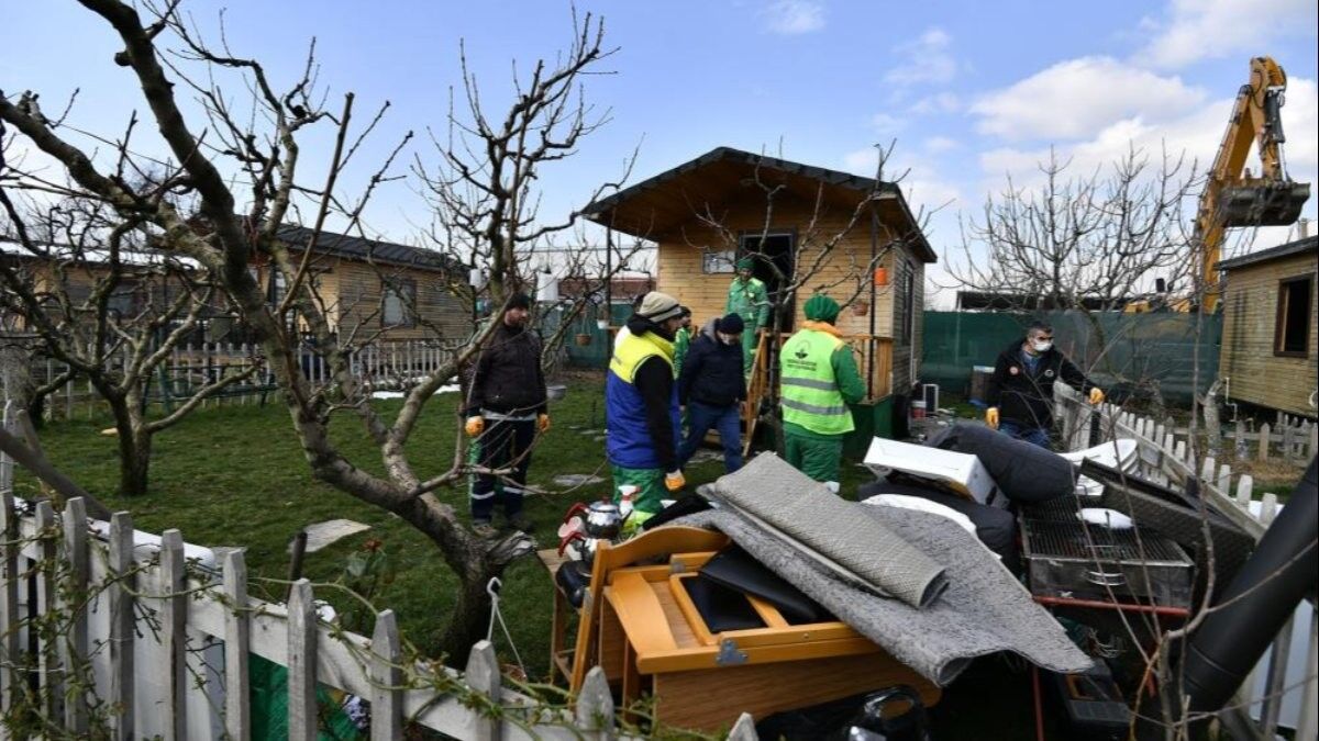 Ekipler tarafından içerisindeki eşyalar boşaltılan kaçak yapılar, güvenlik önlemleri altında iş makinesi ile yıkıldı.