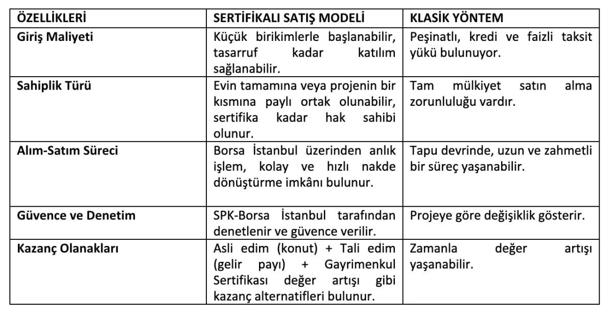 SERTİFİKALI SATIŞ MODELİ İLE KLASİK YÖNTEM KARŞILAŞTIRMA TABLOSU